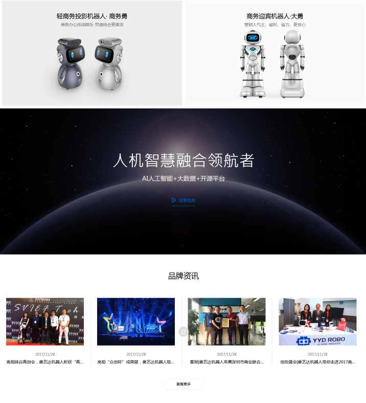 深圳網(wǎng)站建設公司卓越邁創(chuàng)跟您分享一下簽約心得:說起機器人,我們就會聯(lián)想到變形金剛電影里面的場景,炫酷的動作震撼我們的眼球。對于人類而言,敢于夢想似乎沒有什么能難倒人類科技的。今天卓越邁創(chuàng)為深圳知名機器人品牌(簡稱:小勇機器人)進行品牌網(wǎng)站建設,網(wǎng)站根據(jù)客戶的需求,再結合我們的專業(yè)度進行深度挖掘,尤其是在整體效果制作上,我們花了不少心思,力求讓整個頁面的效果能夠清新動人,用戶體驗獲得愉悅感。就猶如小勇機器人的使命一樣,致力于人機智慧融合,成為貼心陪伴寶寶的智能機器人。讓我們先欣賞一下首頁帥氣的風格吧: